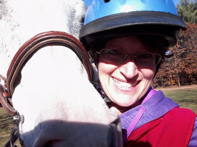 I am willing to ride with anyone. My horses are draft crosses and prefer walk, trot and occasional canters. If anyone wants to learn the Bearbrook trails I’m glad to be the tour guide!